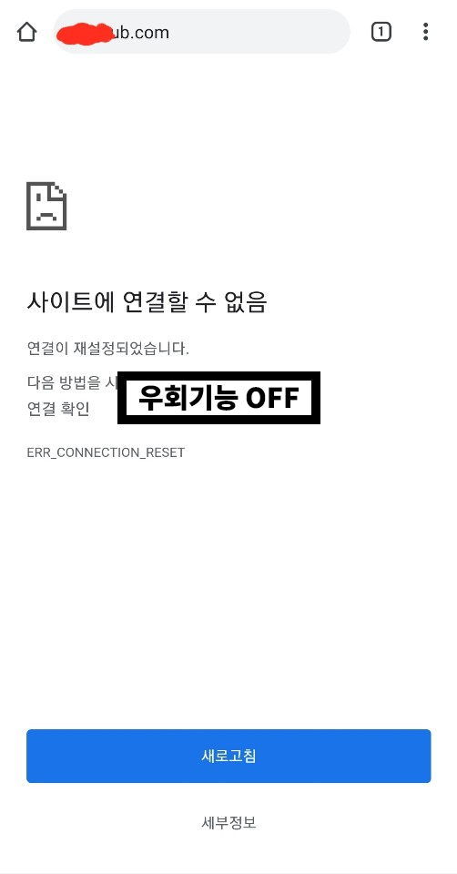우회를 켜고 새로고침을 해보니 사이트가 들어가지네요.