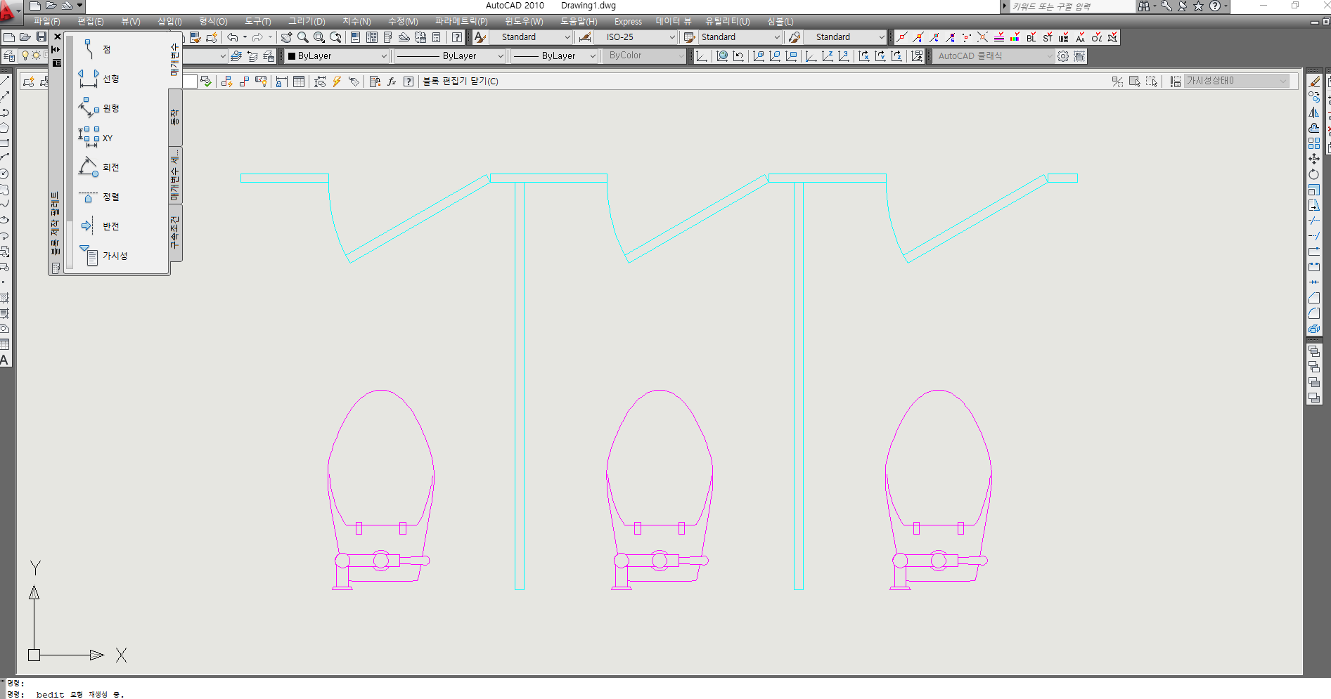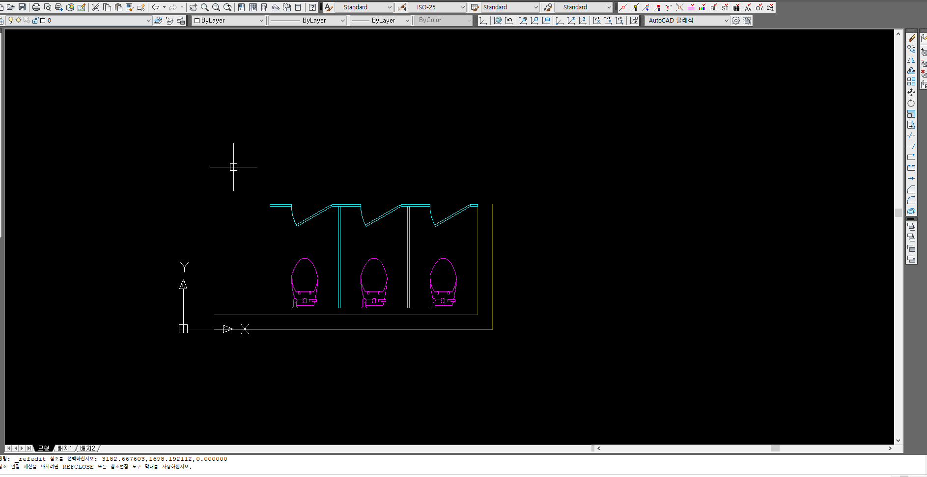예를 들면 변기의 치수는 모두 같지만, 변기칸의 경우는 계획하기에 다르기때문에 참조편집으로 수정합니다.