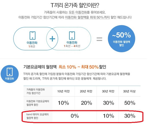 T끼리 온가족결합할인은 SKT에서 장기고객들을 대상으로 가족끼리 묶었을때 합산기간에 따라 할인해주는 혜택입니다.