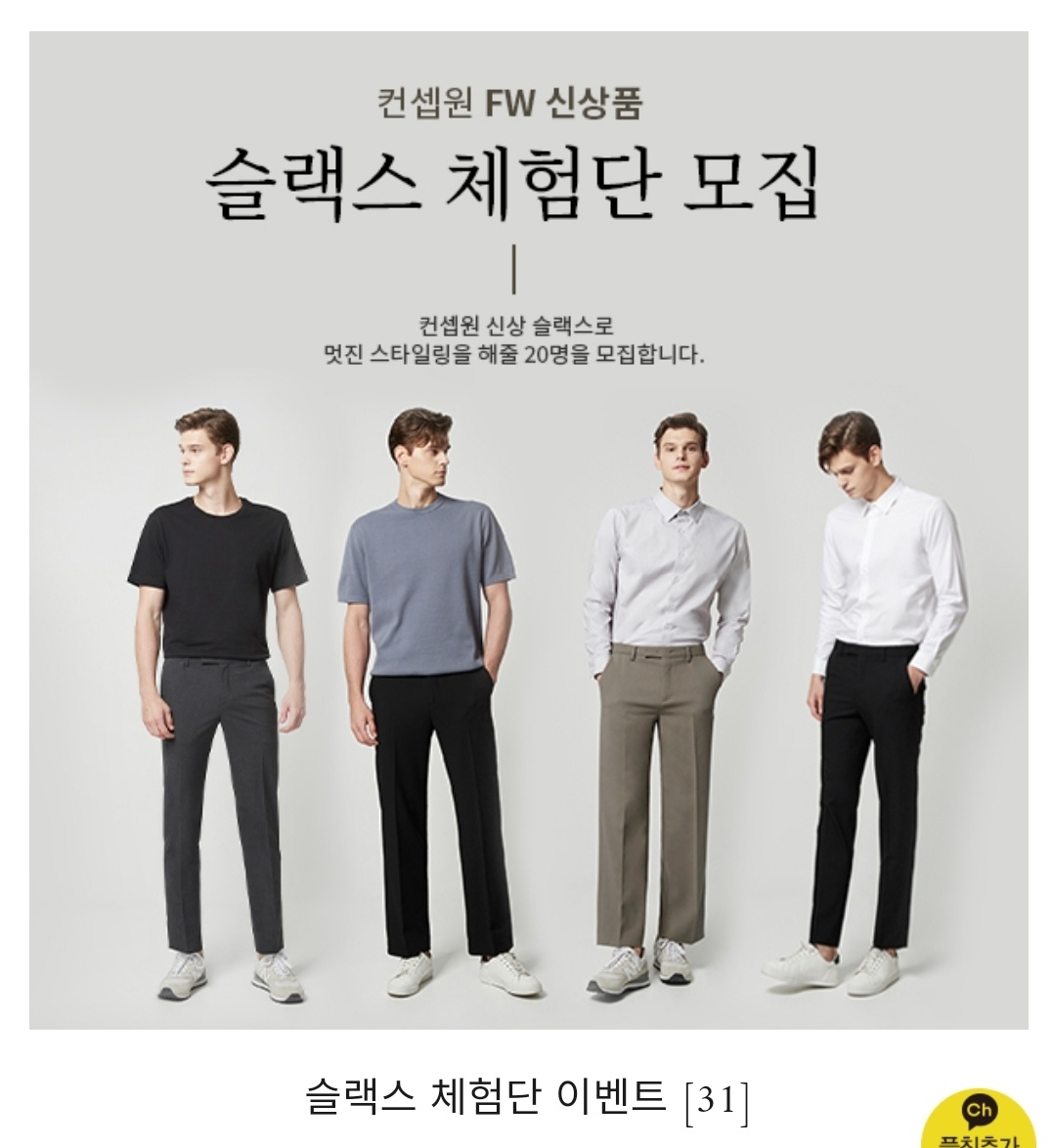 컨셉원을 이용하는 사람들은 알겠지만, 컨셉원의 슬랙스의 품질은 매우 괜찮은 편이다. 가격은 지오다노나 유니클로처럼 SPA브랜드의 가격이 저렴한 라인업의 슬랙스에 비하면 높은 편이지만, 그만큼이나 옷감의 질이나 핏의 느낌은 매우 좋은편이다.