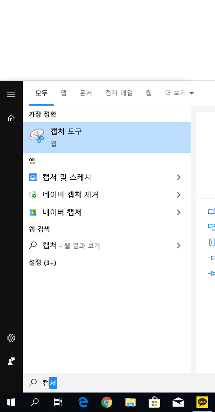 찾는 방법은 [윈도우키]-검색 창에 [캡처 도구]로 검색하시면 찾을 수 있습니다.