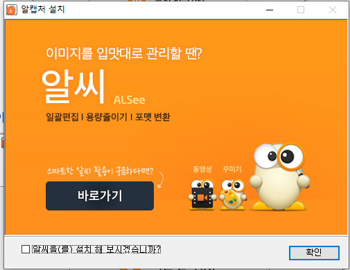 한번더 [알씨를 설치 해 보겠냐]는 질문에 체크해제 해주신후 확인을 누르시면