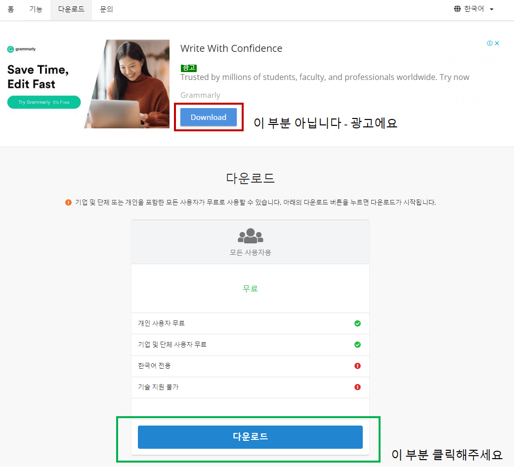 위의 링크에 들어가셔서 광고가 아닌 하단에 다운로드를 클릭해줍니다.